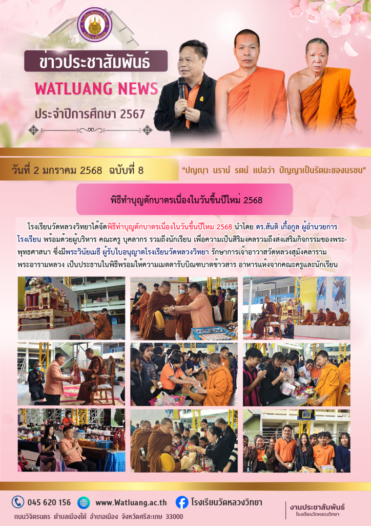 Pada tanggal 2 Januari 2025, Sekolah Wat Luang Wittaya mengadakan upacara sedekah dalam rangka menyambut Tahun Baru 2025, yang dipimpin oleh Dr. Santi Keokul, direktur sekolah, beserta para administrator, guru, staf, dan siswa,...