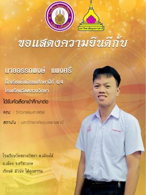 นักเรียนศึกษาต่อที่มหาวิทยาลัยอุบลราชธานี
